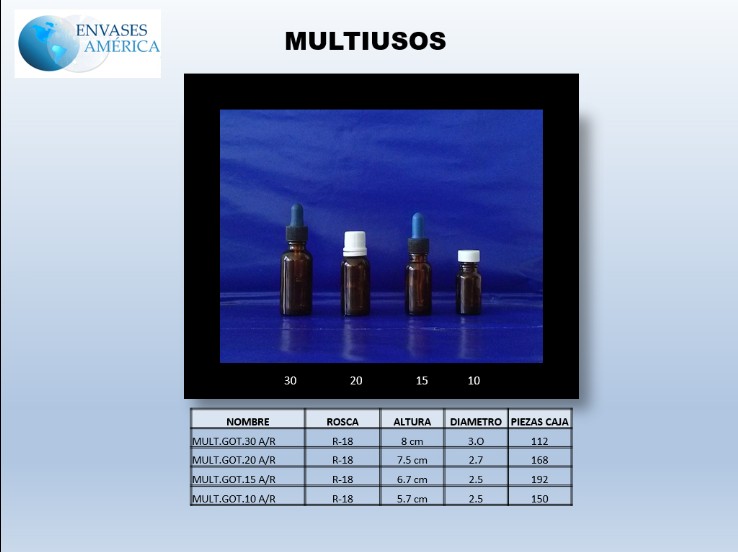 farmacéutica entre los que están los envases de vidrio de esta sección.